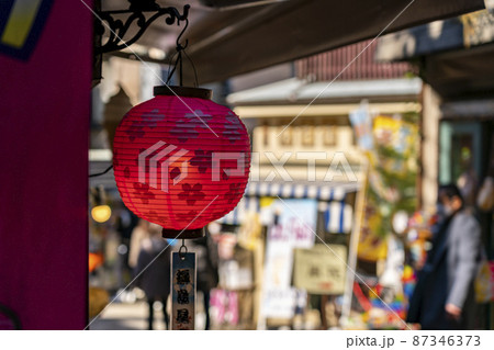 【神奈川県】江ノ島のお店に吊るされた桜柄の提灯