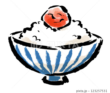 お茶漬け(梅茶漬け) 和食の手描き水彩イラスト素材