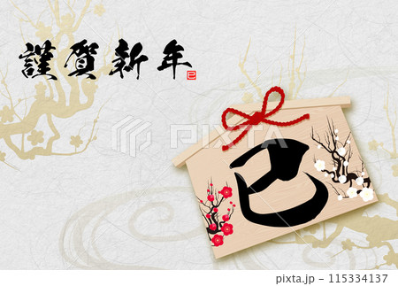 筆文字で書かれた巳文字の絵馬(年賀状素材)