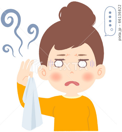 ニオイのする衣類を指で摘まみ上げて絶句する女性