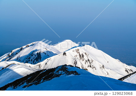 夕日に染まる後立山連峰の稜線(剱御前からの景色) 残雪期の北アルプス立山・別山登山