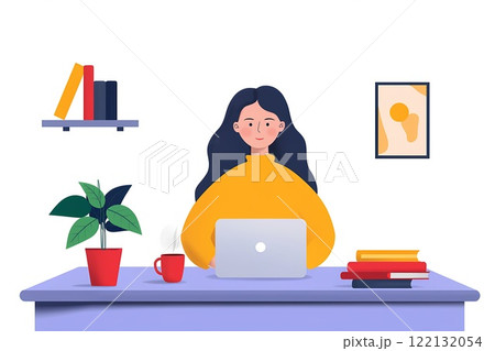 llustration of A woman dressed professionally from the waist up, on a video call, while her cat is playfully sitting on her lap.