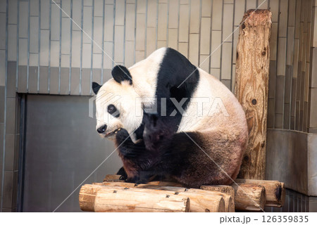 葉を食べるレッサーパンダのアップ 多摩動物公園