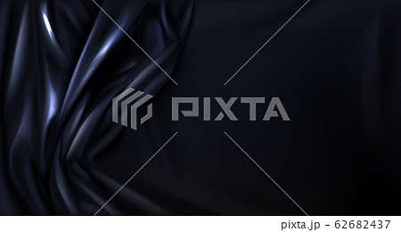 Smooth elegant black satin texture abstract background. Luxurious flowing background design. Vector Drapery Wallpaper BG