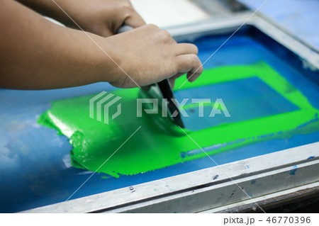Hand pressing silk-screen printing, close up view.