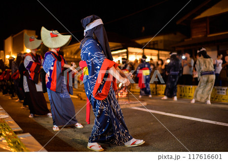 藍染浴衣 端縫い着物で踊る人々 西馬音内盆踊り 2024年 秋田県