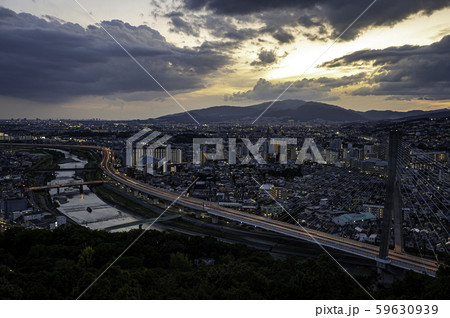 大阪府池田市五月山の秀望台からの夕景、新稲川大橋