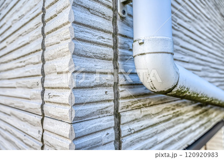 ひび割れの劣化したサイディング 雨どい