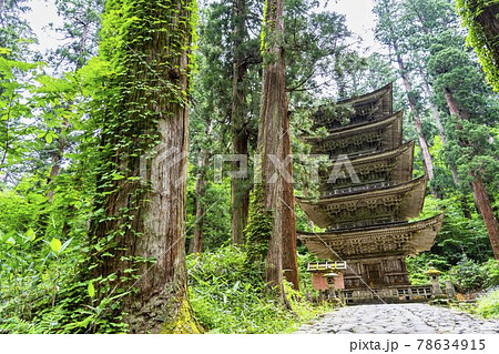 初夏の出羽三山神社 五重塔と爺杉 山形県鶴岡市