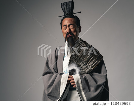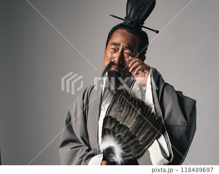 三国志に登場する諸葛孔明のような中国歴史上の軍師が泣いているシーン
