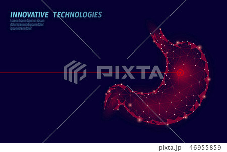 Human stomach laser surgery operation low poly. Medicine disease drug treatment painful area. Red