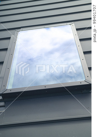 トップライトを設置した黒いガルバニウム合板の板金屋根