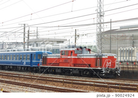 網干総合車両所宮原支所にて入れ換えを行うDE10形+12系客車