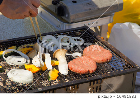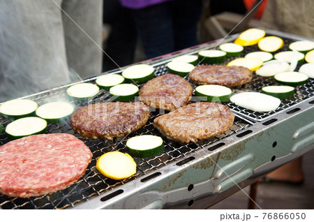 バーベキューの風景 BBQ キャンプ アウトドア ハンバーガー