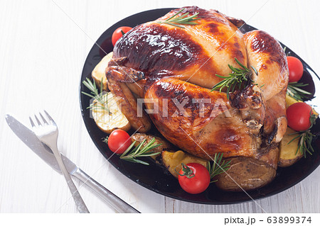 Baked chicken with pototoes , chery tomatoes and
