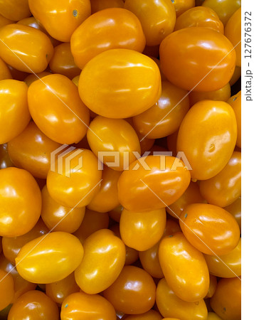 Heap of Ripe Yellow Plum Tomatoes. Natural Food Pattern