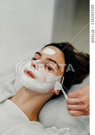 Professional facial skin care. A master massages a woman's face in a beauty salon.