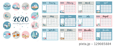 12個月空白月曆模板,手繪風格可愛居家插圖設計,記事本、筆記本、待辦事項、備忘錄、日記素材圖片