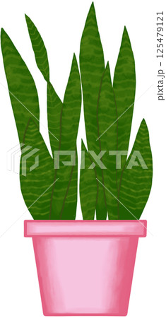 Beautiful green colors of snake plant are growing up in a pink ceramic pot for decorate home and garden.