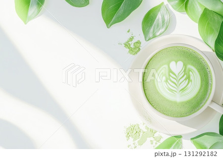 Minimalist matcha latte with leaf art