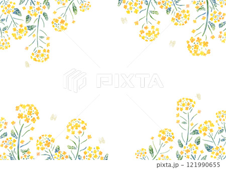菜の花と蝶のフレーム 横長 水彩タッチ