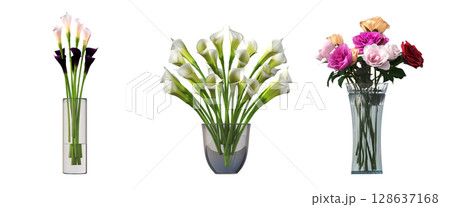 decorative flowers and plants for the interior, isolated on transparent background, 3D illustration, cg render
