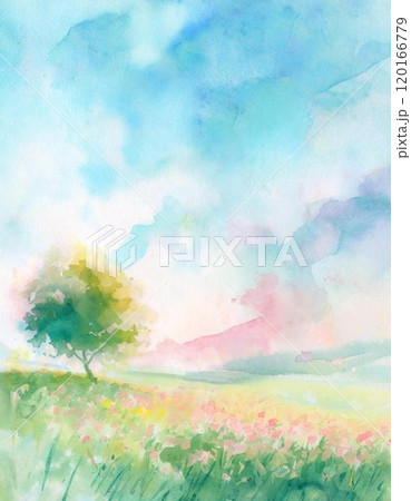 Dreamy fantasy colorful watercolor background of pastel cloud in sky. This whimsical and peaceful illustration perfect for art and design