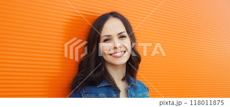 Autumn style, beautiful stylish young woman posing in orange hat, jacket on brown background