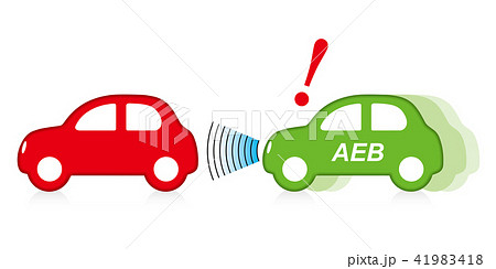 自動ブレーキ・緊急ブレーキの概念図・イラスト|AEB 自動車のイラスト|ベクターデータ