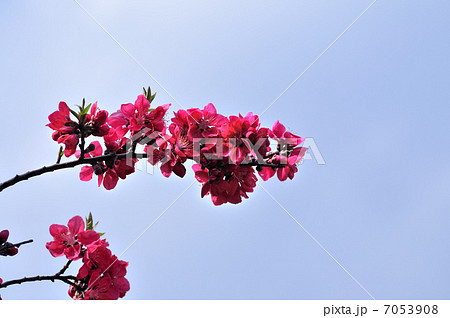 ピンクの唐梅の花と青い空