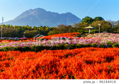 有明の森フラワー公園のサルビアとコスモス パノラマ 【長崎県島原市】