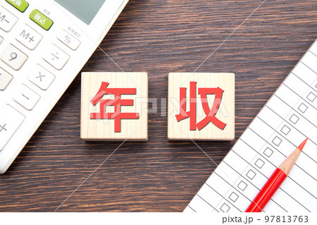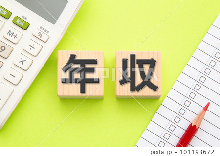 年収(新紙幣と電卓)