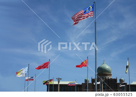 マレーシア 観光イメージ 首相官邸と国旗と州旗