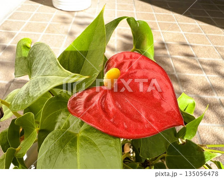 鮮やかな赤のアンスリューム | 観葉植物クローズアップ