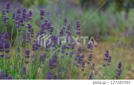 伊豆高原「さくらの里」の花壇の中のたくさんのラベンダー(イングリッシュラベンダー)