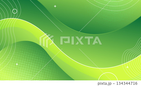 Dynamic Green Abstract Background with Curved Lines and Halftone Pattern