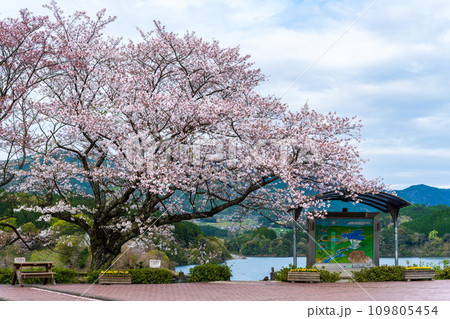 桜咲く季節に映える観光スポット 緑川ダム公園周辺風景 (熊本県下益城郡美里町)