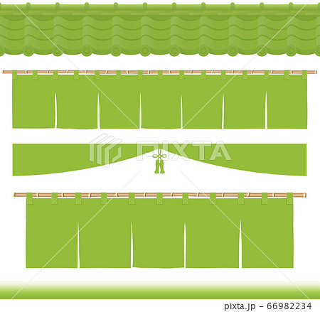 抹茶 広告イラスト 抹茶色の瓦屋根と暖簾