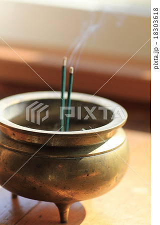 香炉に立てたお線香 仏教 お線香立て