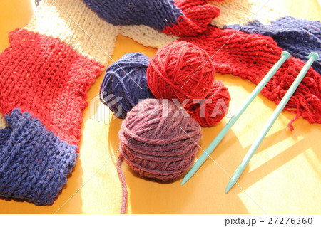 手編み 毛糸玉 編み棒