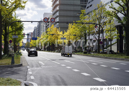 大阪市本町・色づく秋の銀杏並木と本町周辺の街並み