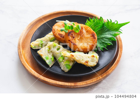 焼いた枝豆天と丸天