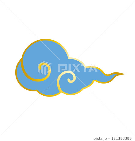 吉祥雲のイラスト 金の縁どりあり 背景透過