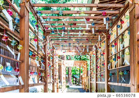 夏の熊野神社(熊野大社) 風鈴の飾り「かなで」 山形県南陽市