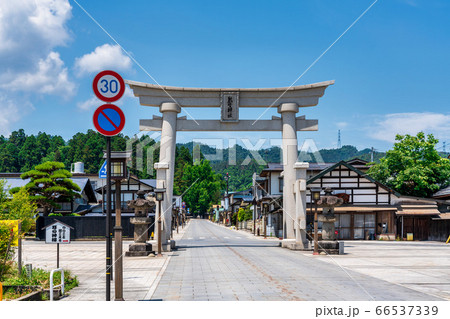 初夏の熊野神社(熊野大社) 参道と鳥居 山形県南陽市