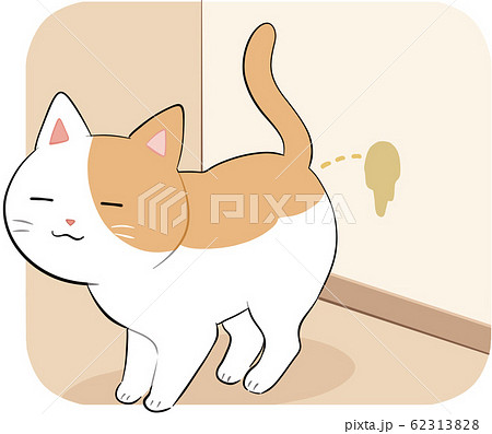 シャーと怒っているかわいいイカ耳の白い色の子猫のイラスト