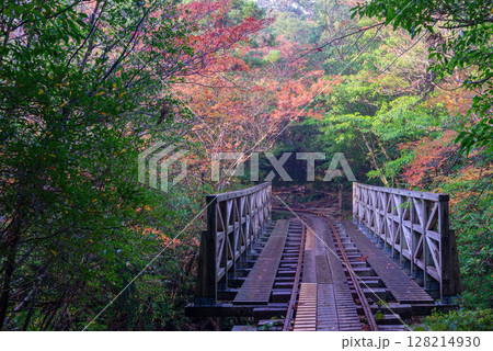 紅葉色づく木々 トロッコ橋梁 屋久島国立公園(秋
