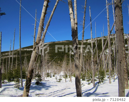 縞枯山と茶臼山の鞍部の枯れ木