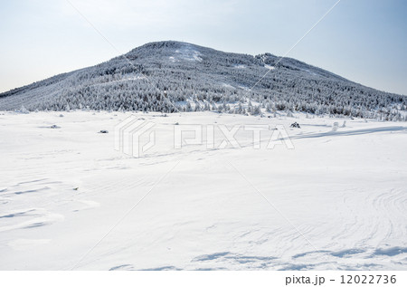 冬の北八ヶ岳の坪庭から見た縞枯山
