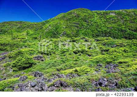長野県 北八ヶ岳の北横岳から南側の坪庭と縞枯山を見る